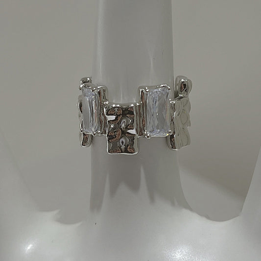 925 Silver Zircon Big Diamond Emerald Cut Row Diamond Ring