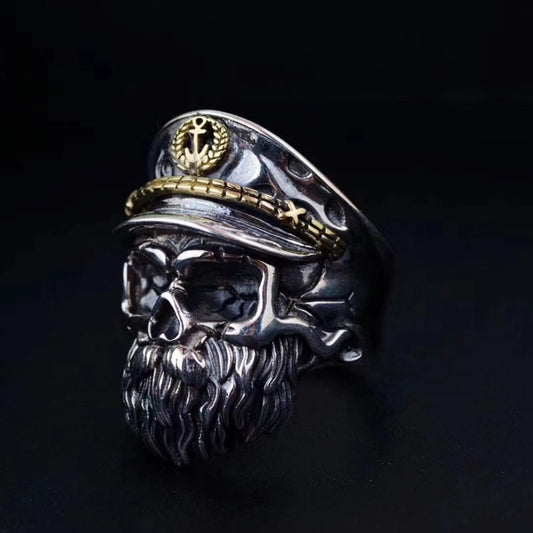 S925 Sterling Silver Men's Exaggerated Dark Skull Ring