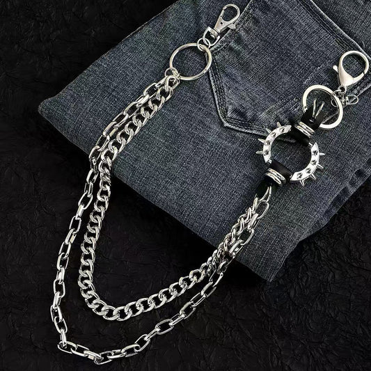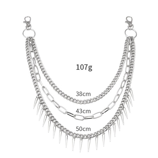 Gold Double Briar Barb Personality Pants Chain Fashion Metal Two Layer Chain Hip Hop Punk Jeans Hip Hop Club Accessories