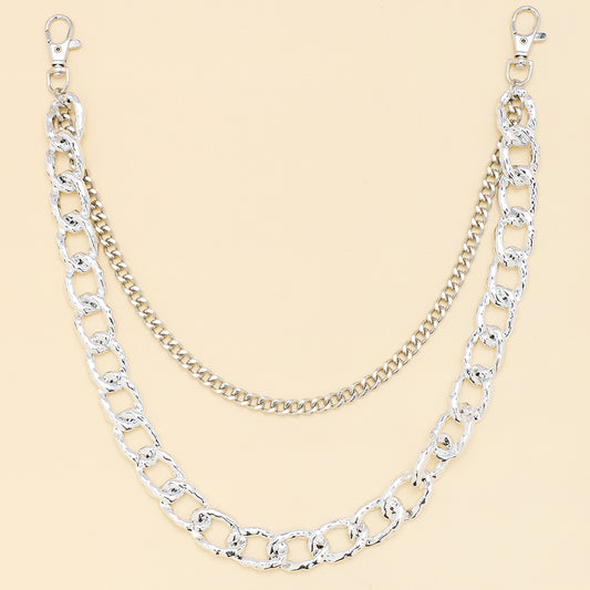 Silver Multi-layer Hollow Pants Chain Personality Design Thick And Thin Chain Simple Fashion With Denim Overalls