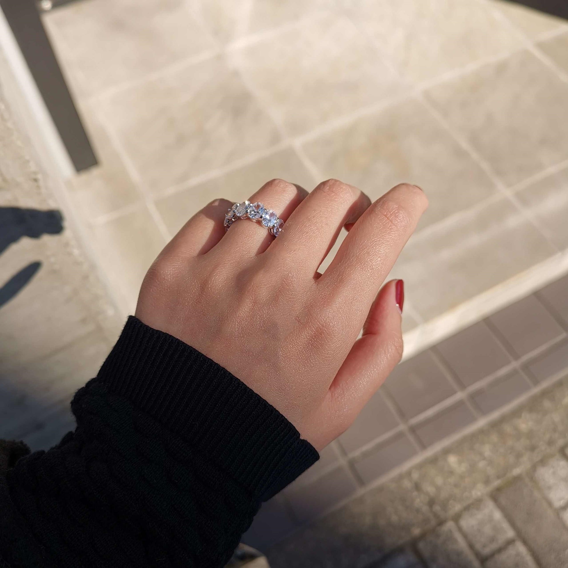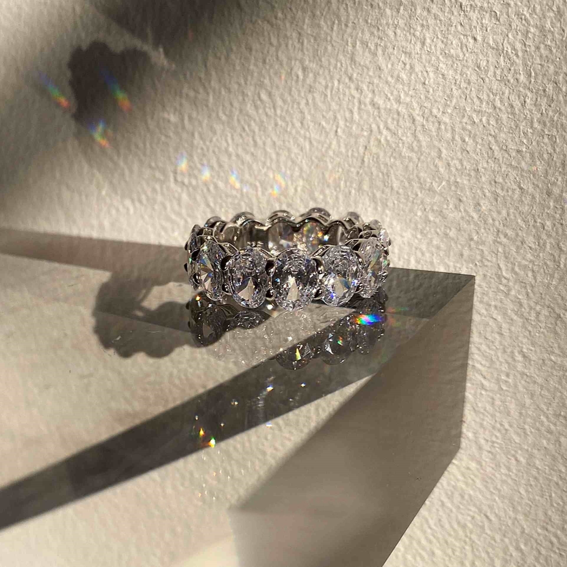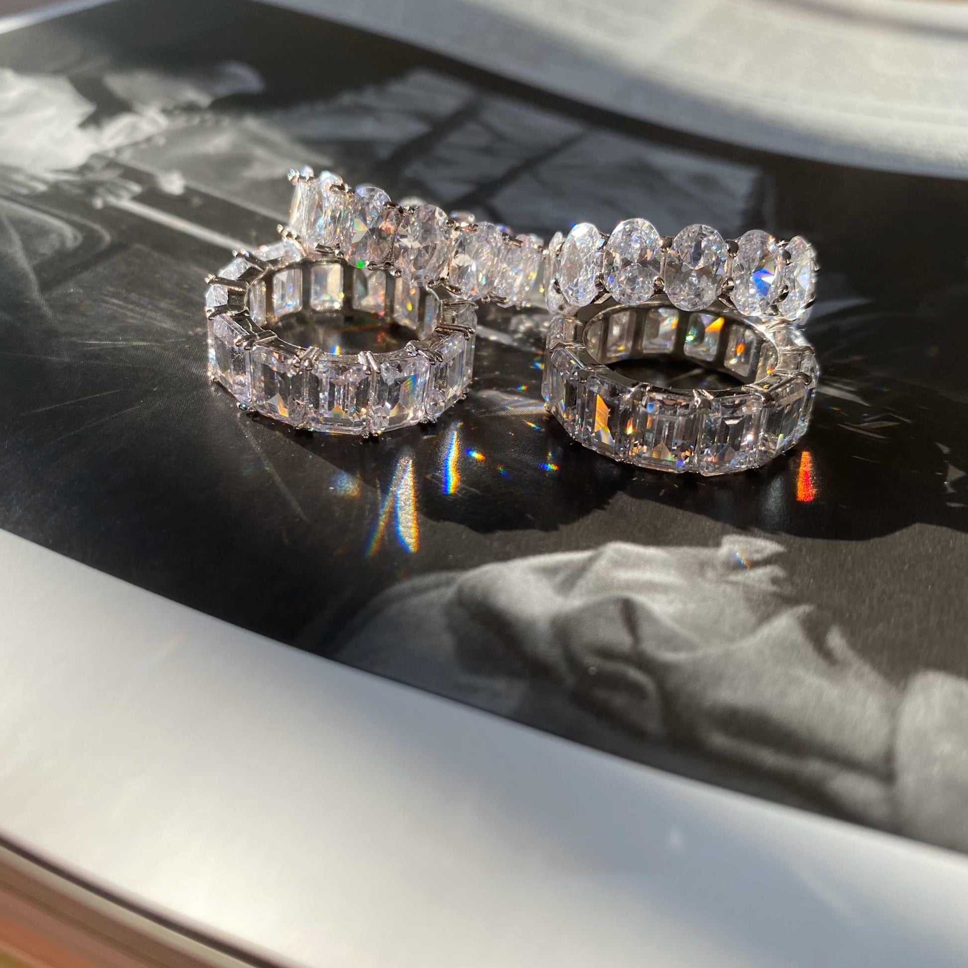 925 Silver Zircon Big Diamond Emerald Cut Row Diamond Ring
