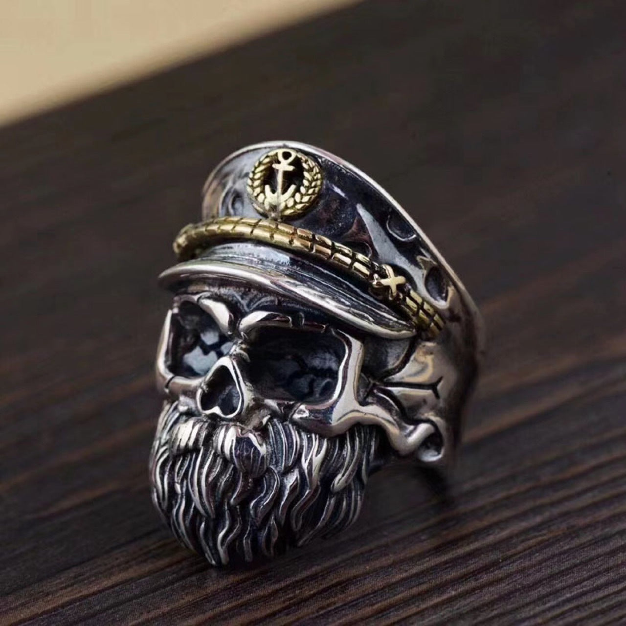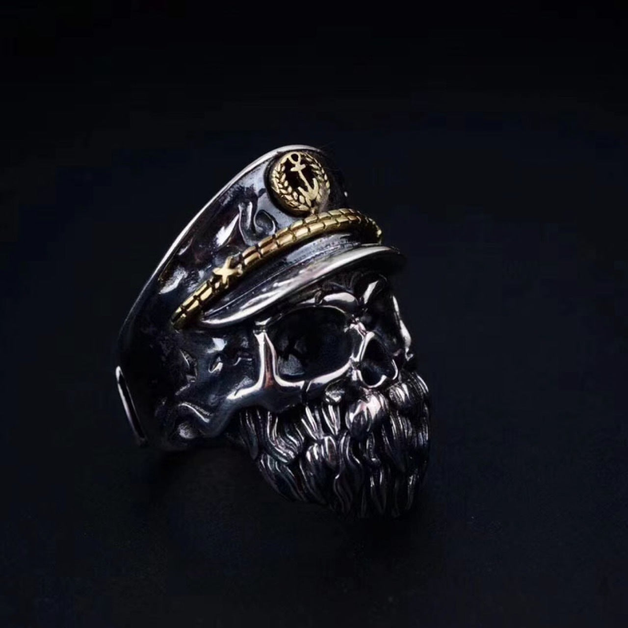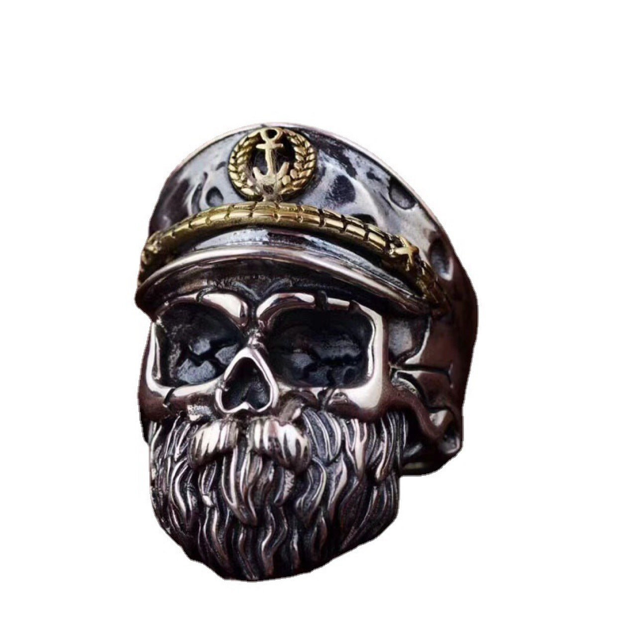 S925 Sterling Silver Men's Exaggerated Dark Skull Ring