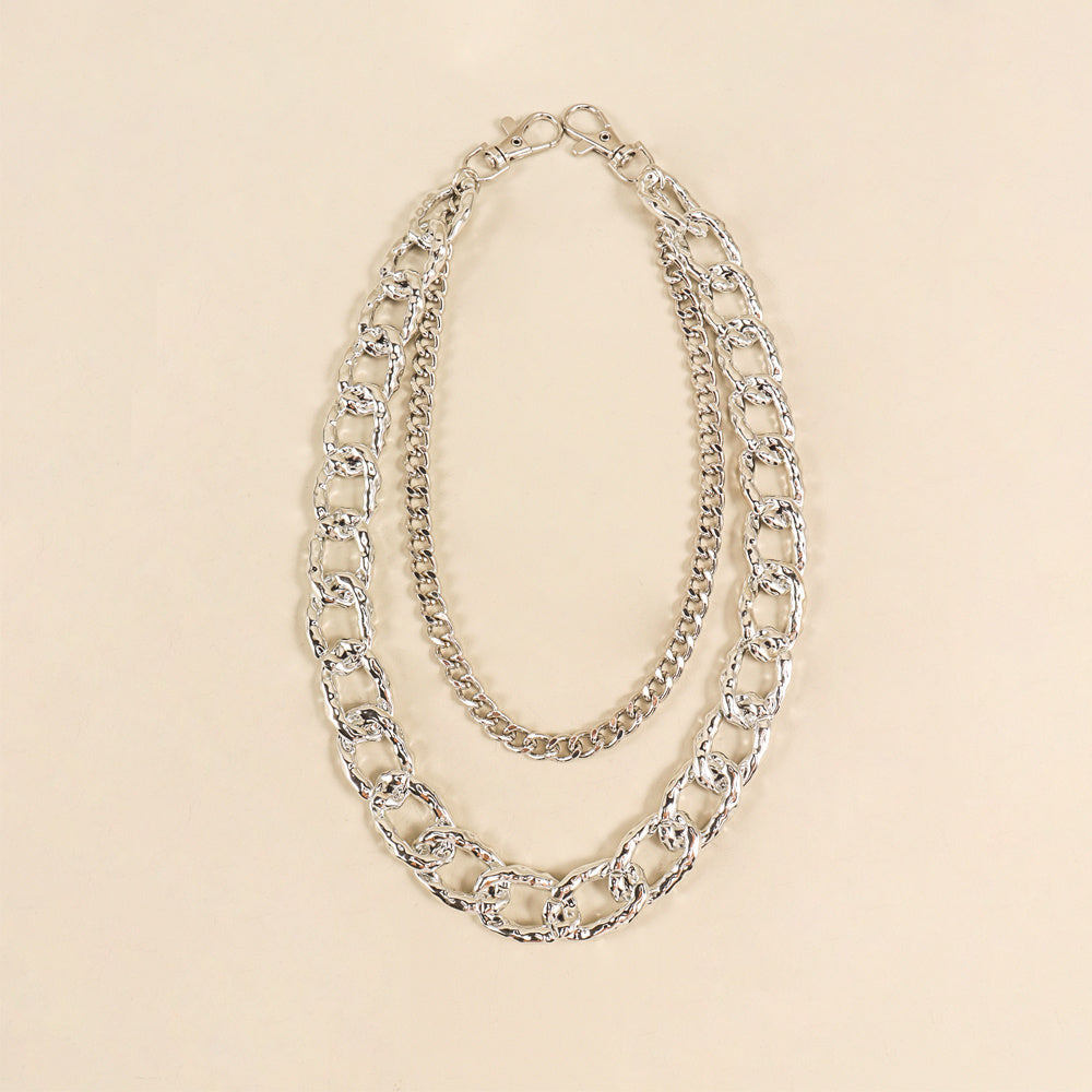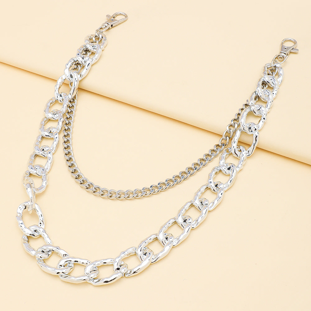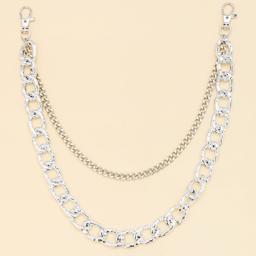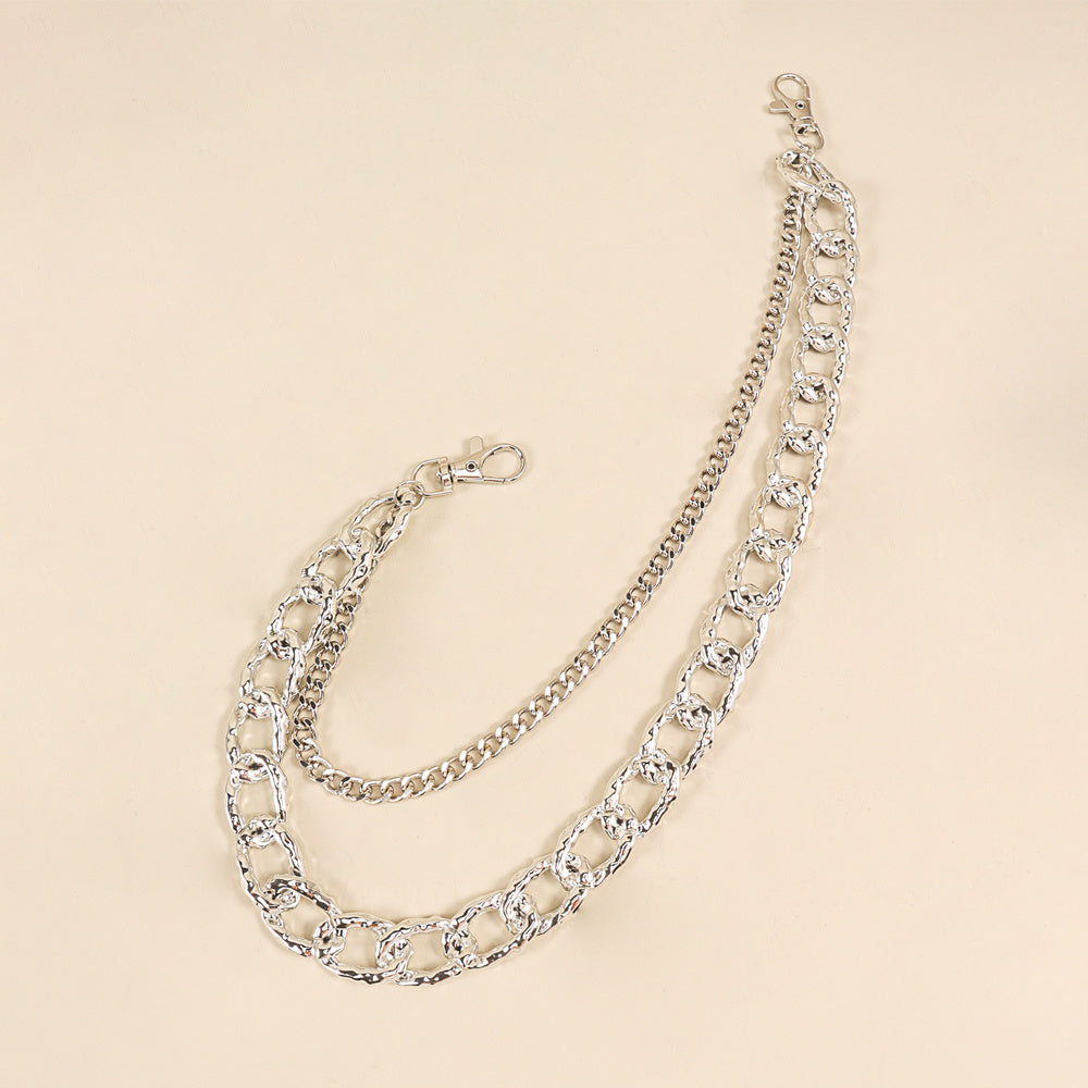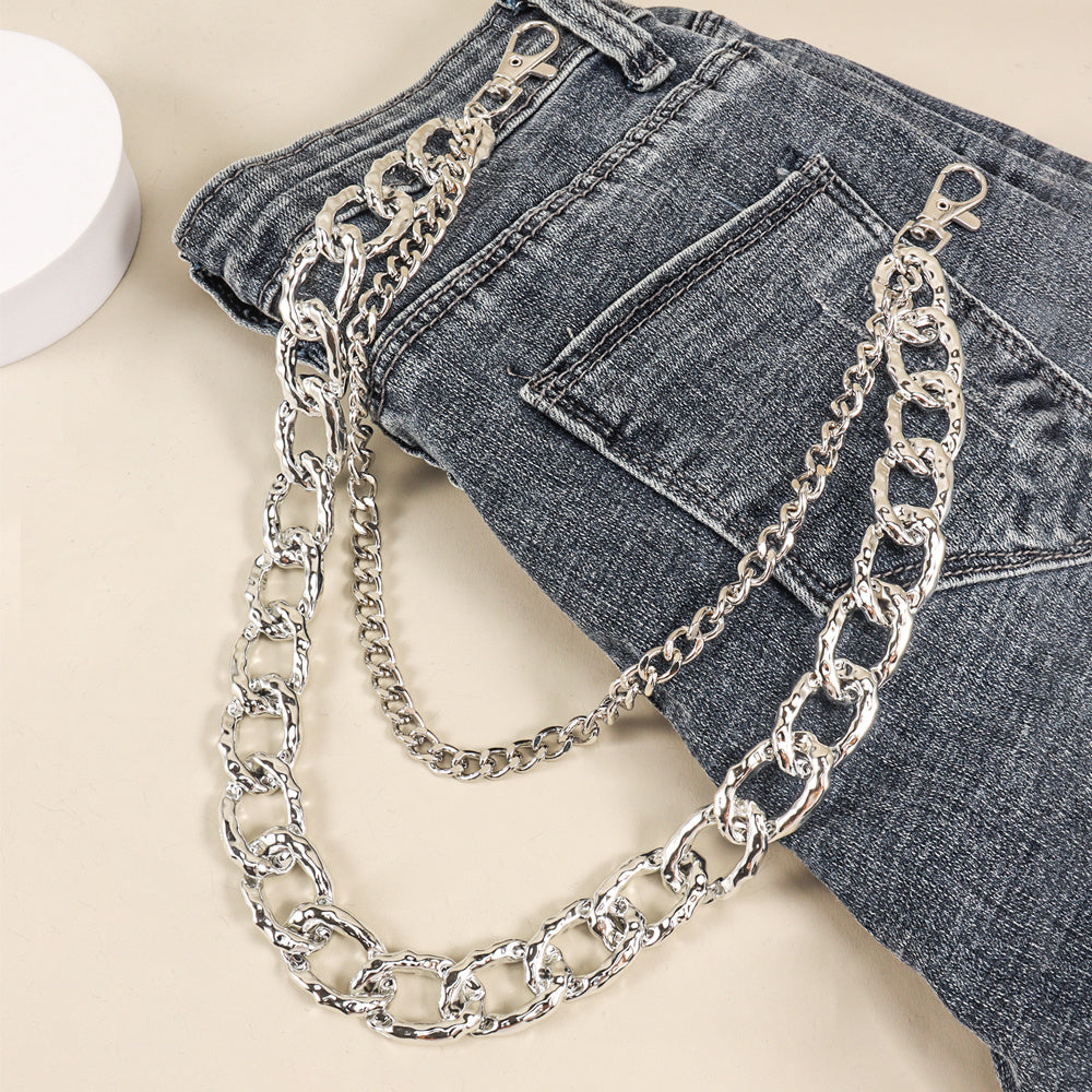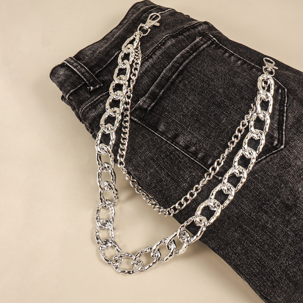 Silver Multi-layer Hollow Pants Chain Personality Design Thick And Thin Chain Simple Fashion With Denim Overalls