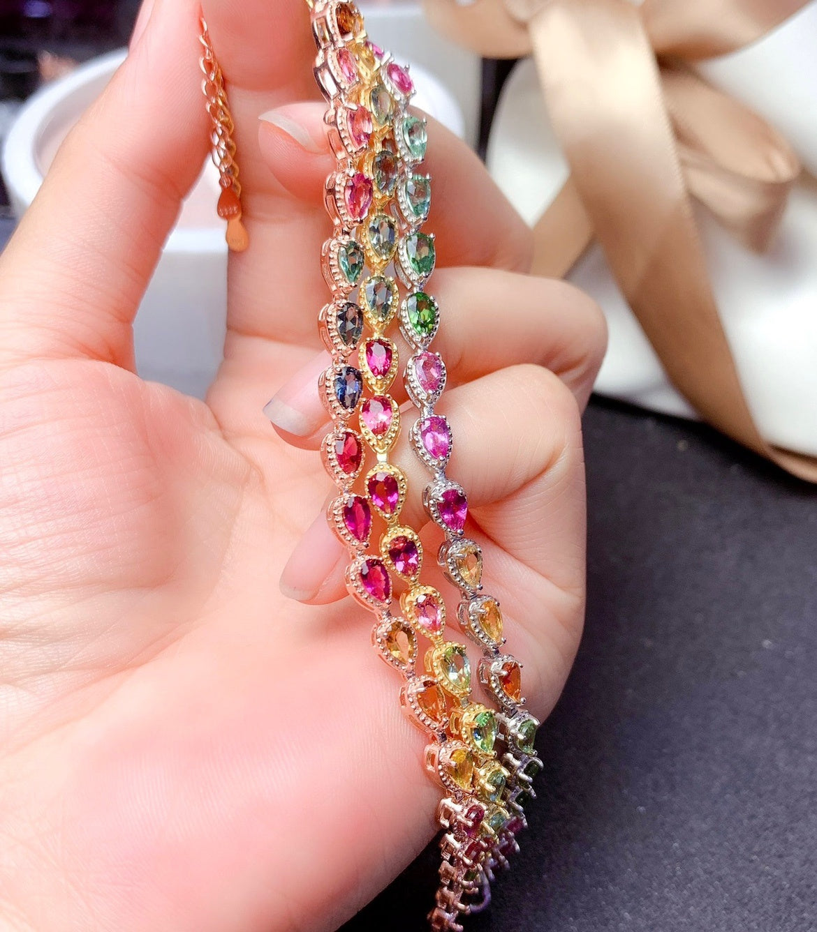 Women's Natural Candy Color Tourmaline Bracelet