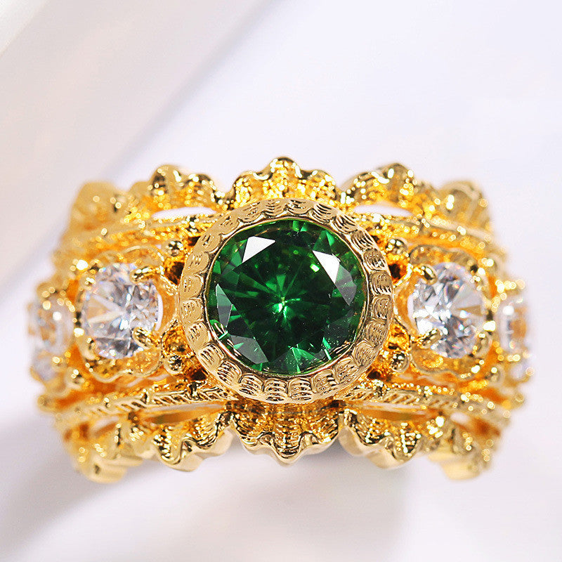 Women's Silver Gilded Lace Hollow Zircon Ring